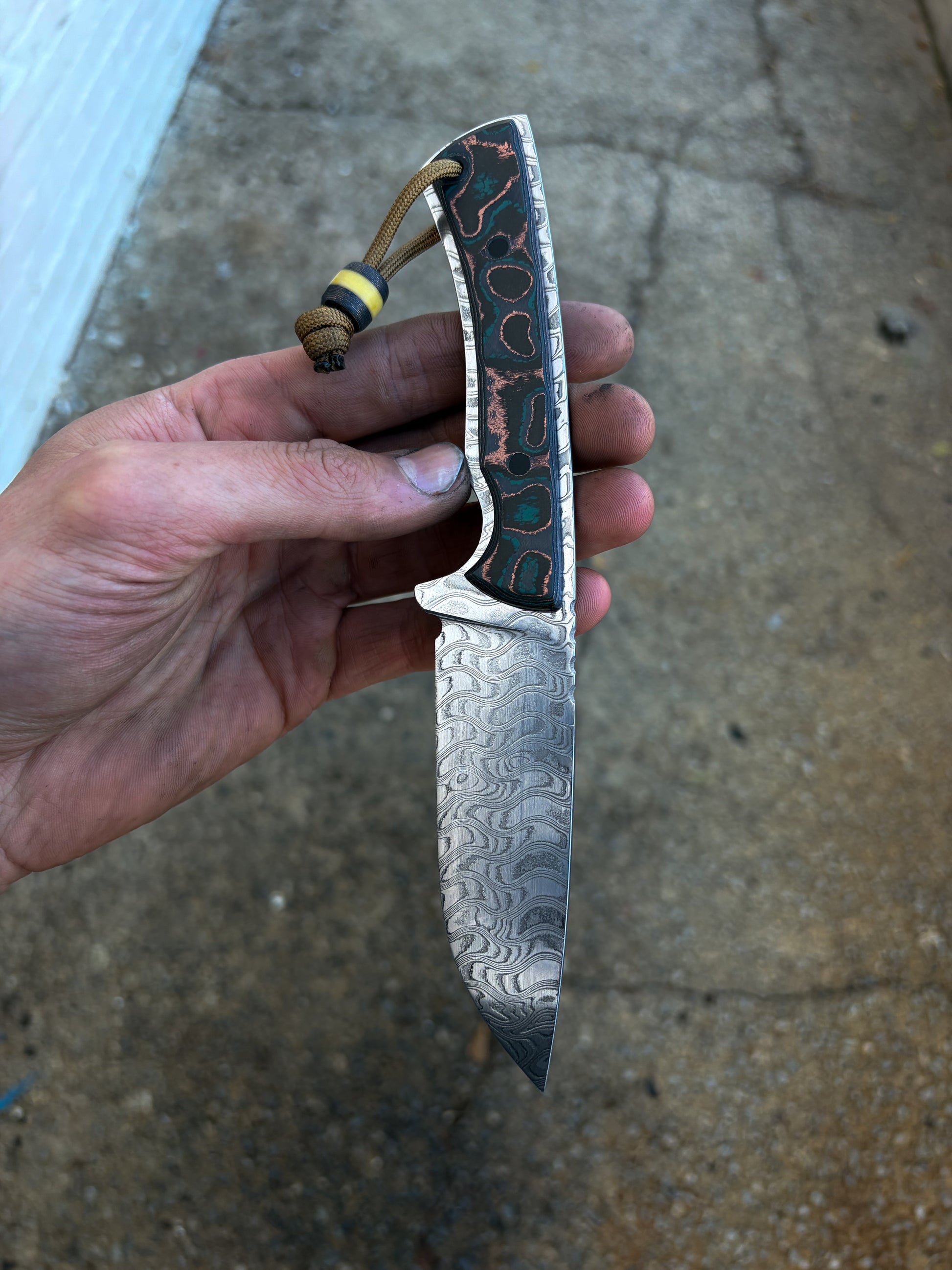 *Note* Does Not come with a sheath. I don’t prefer making kydex sheaths for Damascus dude to risk of scratching the finish, and am not currently able to hand make a leather sheath.